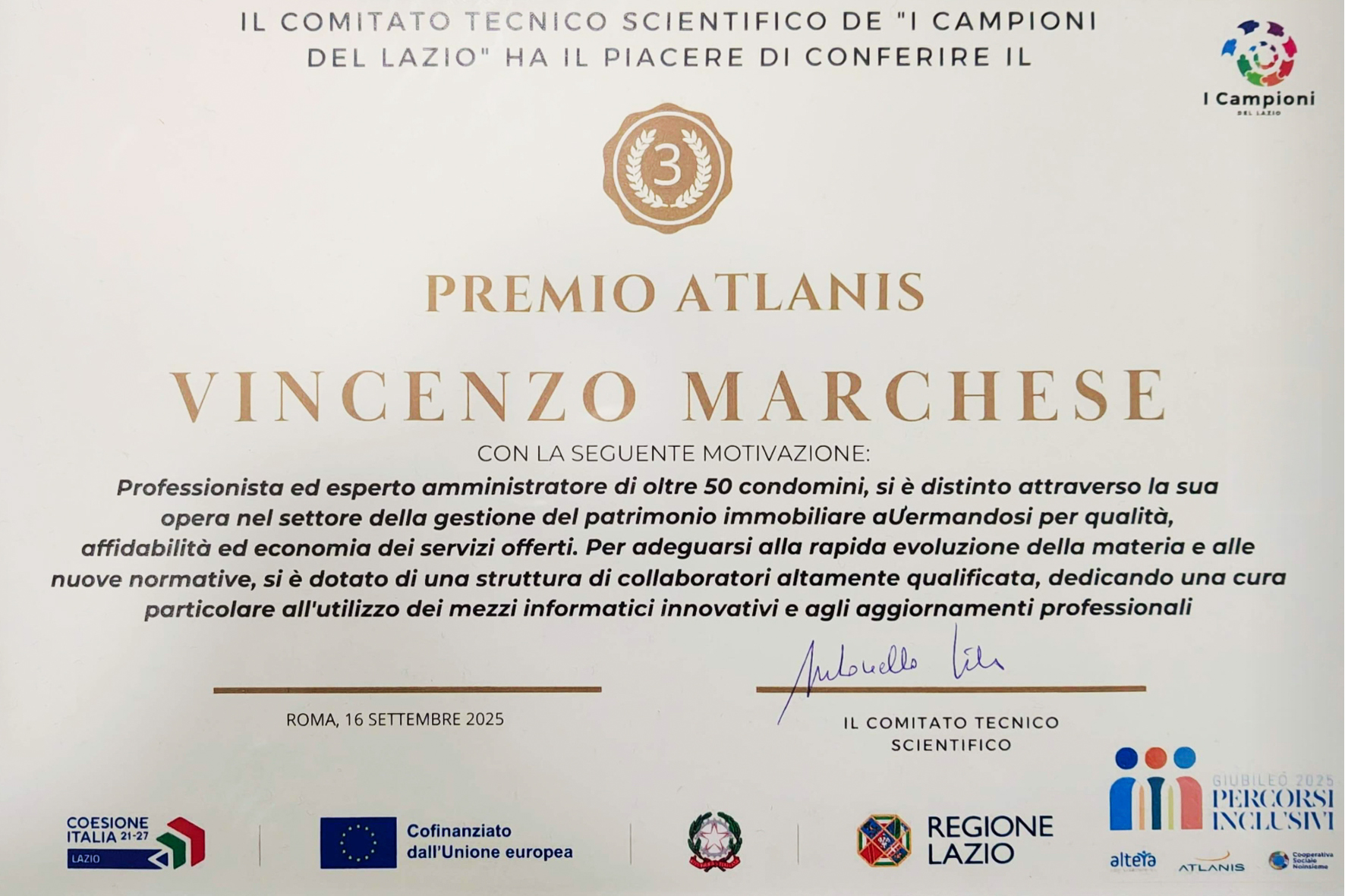 Nato a Roma nel 1967 ha conseguito il titolo di studio di geometra      ed ha maturato un’esperienza trentennale nella gestione di complessi immobiliari, grazie anche alla gestione diretta della contabilità lavori  e contabilità amministrativa di diversi immobili    per conto di un importante gruppo bancario americano. Tutto ciò lo ha fatto crescere sia sotto l’aspetto professionale e soprattutto sotto l’aspetto umano, essendo stato a contatto diretto con molte persone nella vita di tutti i giorni.